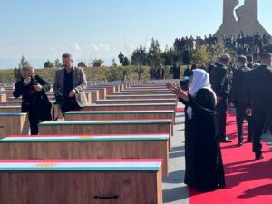 واكدت السيدة الأولى شاناز ابراهيم احمد، ان الواجب الوطني والإنساني يحتم على الجميع العمل على إكمال عملية تشييع ودفن رفات المؤنفلين (172)، الذين تم استلامهم من دائرة الطب العدلي ببغداد وإجراء مراسم الدفن في السليمانية وبما يليق بتضحياتهم، مشيرة إلى أن رفات المؤنفلين بقيت في دائرة الطب العدلي ببغداد لمدة أربع سنوات ونصف.