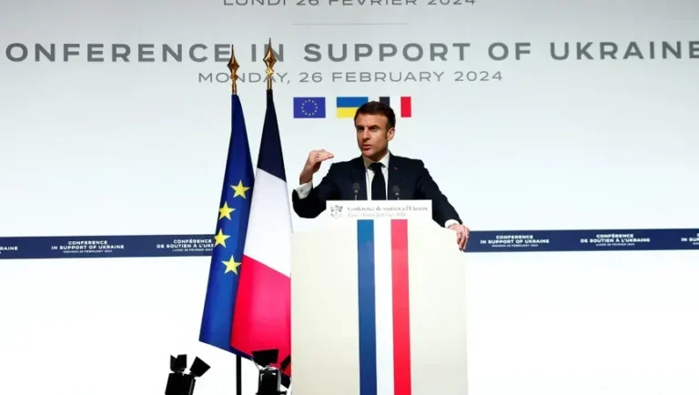 ولفت ماكرون “الى ان الدول الأوروبية ستزيد العقوبات المفروضة على البلدان التي تساعد روسيا على تجاوز العقوبات التي فرضها الاتحاد الأوروبي على خلفية غزو أوكرانيا،و أنّ حلفاء أوكرانيا سيشكلون تحالفاً لتسليم صواريخ متوسطة وطويلة المدى إلى كييف ،لتوجيه “ضربات في العمق” وبالتالي لتزويد أوكرانيا بـ “صواريخ وقنابل متوسطة وطويلة المدى”.