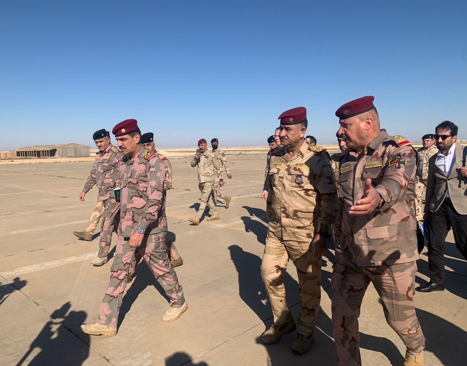 شاركها فيسبوك تويتر لينكدإن بينتيريست البريد الإلكتروني تفقد وفد امني رفيع المستوى اليوم الخميس ، برئاسة رئيس اركان الجيش الفريق الاول ركن عبد الامير رشيد يار الله، قاعدة عين الاسد في محافظة الانبار. ويضم الوفد نائب قائد العمليات المشتركة الفريق الاول الركن قيس المحمداوي. almasra