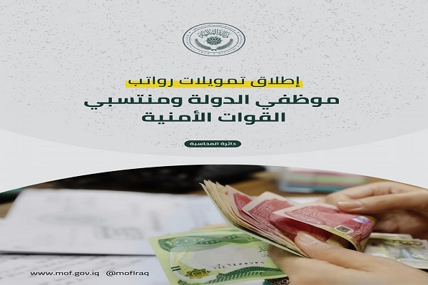 وقالت الوزارة في بيان تابعه المسرى ، إن “دائرة المحاسبة باشرت بإجراءات تمويل رواتب موظفي الدولة ومنتسبي القوات الأمنية لشهر آذار الحالي”، داعية “وحدات الإنفاق في الوزارات والمحافظات والجهات غير المرتبطة بوزارة، الى مراجعة دائرة المحاسبة لاستكمال متطلبات تمويل رواتب موظفيهم ومنتسبيهم”.