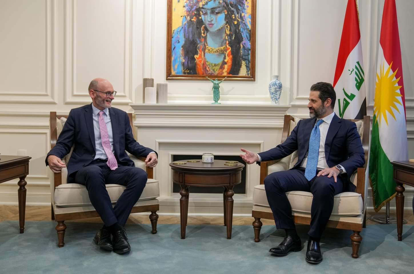 وقال مكتبه الإعلامي إن “نائب رئيس وزراء إقليم كردستان قوباد طالباني، استقبل في أربيل، اليوم، السفير البريطاني لدى بغداد ستيفن هيغن”، مبينا أن “اللقاء شهد بحث ملف الانتخابات التشريعية في إقليم كردستان والعلاقات بين الإقليم وبغداد بالإضافة إلى الملفات التي تحظى بالاهتمام المشترك”، مشيرا إلى أن” طالباني شدد على إجراء الانتخابات في الموعد المحدد من لدن رئاسة الإقليم”.
