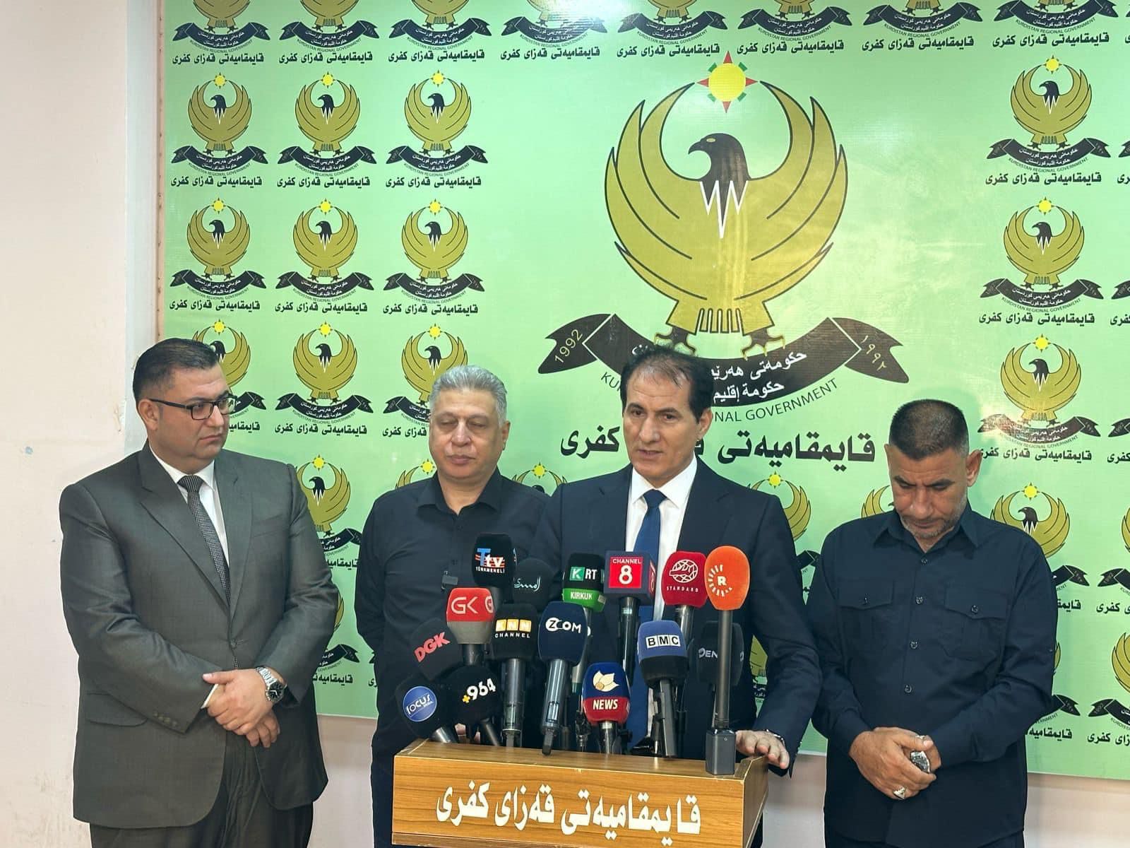 وفي مؤتمر صحفي اكد الوفد الزائر ان” عملية الاغتيال، عملية جبانة، تخريبية استهدفت قضاء كفري الذي يعد نموذجا يحتذى به في السلم المجتمعي والتعايش المشترك بين كافة الاطياف والمكونات”.