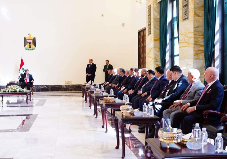 وقال مكتبه الإعلامي إنه “استقبل رئيس مجلس الوزراء محمد شياع السوداني، اليوم الأربعاء، السادة الوزراء ورؤساء الهيئات ووكلاء الوزارات والقادة العسكريين والأمنيين من مختلف تشكيلات وصنوف قواتنا المسلحة، فضلاً عن رؤساء الاتحادات والنقابات، وعدد من شيوخ عشائر ووجهاء محافظة بغداد المهنئين بمناسبة حلول عيد الفطر المبارك”.