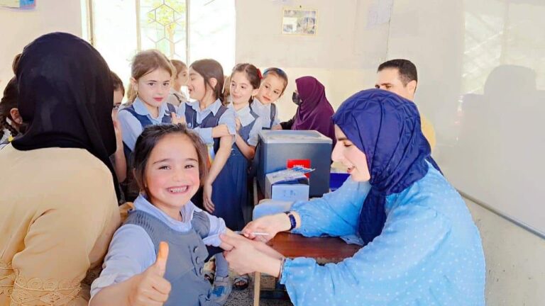 وأضافت أن “عدد الملقحين لغاية اليوم الخامس بلغت حوالي (4،083،387) طفل وبنسبة 55 % من الهدف الكلي في عموم العراق بما فيها اقليم كردستان وذلك لوقاية أبناء بلدنا والحفاظ على صحتهم من الاصابة بالمرض”.