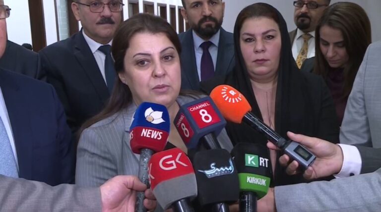 واضافت في مؤتمر صحفي حضره المسرى ، “أن الهدف الأساسي من الزيارة ، ملفان أولهما الاهتمام بملف المياه وإنشاء السدود الاستراتيجية في إقليم كردستان، والثاني، أننا أمام موسم تسويق محاصيل الفلاحين من الحنطة ، ونريد تكثيف الجهود لإسناد وخدمة فلاحينا في إقليم كردستان من خلال الحصول على دعم البرلمان .”
