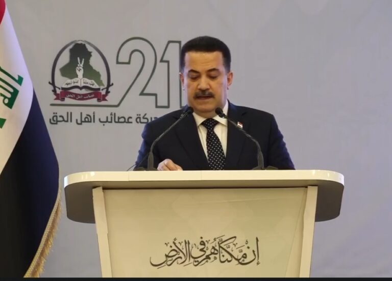 وقال السوداني في كلمة ألقاها خلال الاحتفالية التي أقيمت اليوم في العاصمة بغداد بمناسبة ذكرى تأسيس حركة عصائب أهل الحق إن “الحكومة تخطو، مدعومةً بإرادة برلمانية وشعبية واسعة، نحو إحداث التنمية المستدامة”.