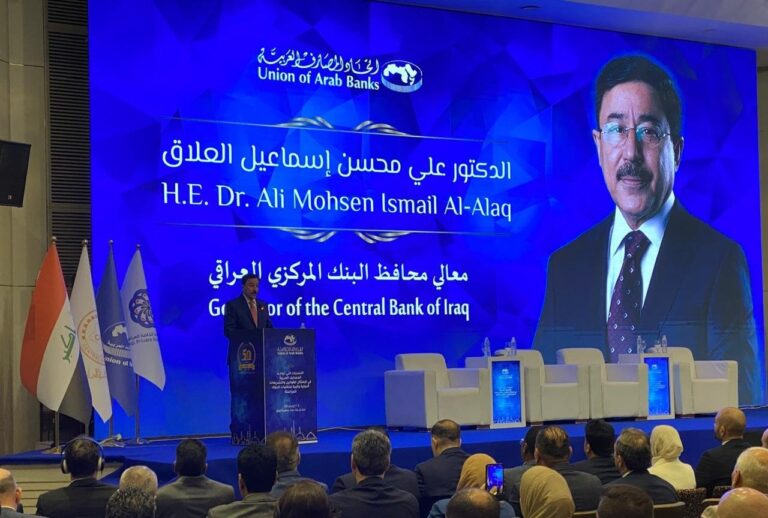 وقال العلاق في كلمة له خلال مؤتمر “التحديات التي تواجه المصارف العربية في الامتثال للقوانين والتشريعات الدولية وتلبية متطلبات البنوك المراسلة”، تابعه المسرى،”يسعدني أن أرحب بكم في بلدكم الثاني العراق، وأتقدم بالشكر والعرفان لمجلس إدارة اتحاد المصارف العربية والأمين العام لرابطة المصارف العراقية الخاصة ولكل من ساهم في تمكين انعقاد هذا المؤتمر الذي لا يخفى على الجميع أهميته في إطار التعاون والشراكات العديدة التي يقيمها البنك المركزي العراقي مع مختلف المنظمات والمؤسسات العربية والدولية. وانفتاحه عليها بهدف تبادل الخبرات وتحسين الأداء في القطاع المصرفي والمالي”.