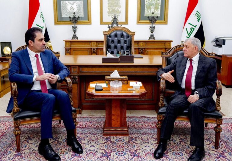 وقال المكتب الإعلامي لرئيس مجلس النواب بالنيابة في بيان ان “رئيس مجلس النواب بالنيابة محسن المندلاوي التقى، اليوم، رئيس الجمهورية عبد اللطيف جمال رشيد”، مبينا انه “جرى، خلال اللقاء، بحث الأوضاع العامة في البلد، إضافة إلى مناقشة آخر المستجدات على الساحتين الإقليمية والدولية”.
