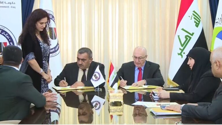 وبدوره أوضح نائب رئيس المؤسسة العامة لشؤون الألغام في حكومة إقليم كوردستان نيازي خالد للمسرى أنه ” نظرا لكثرة المساحات الملوثة بالألغام والمخلفات الحربية غير المنفلقة في العراق، اتفق الجانبان المؤسسة العامة لشؤون الألغام في الإقليم ودائرة شؤون الألغام في وزارة البيئة الاتحادية على توقيع مذكرة تفاهم بينهما من اجل توسيع التعاون وتعزيز النشاطات على كل المستويات المتعلقة بالألغام “، مؤكدا ان ” توقيع المذكرة هذه تعتبر خطوة مهمة تخدم الطرفين وتحقق الأهداف المشتركة للجانبين، وتقديم أفضل الخدمات للمواطنين وخصوصا المتواجدين منهم في الأماكن الملوثة “.