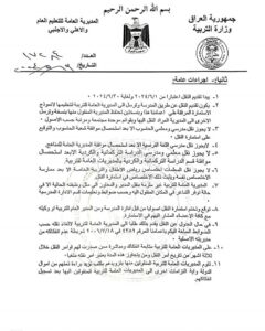 وقالت الوزارة في بيان تابعه المسرى ، ان “المديرية العامة للتعليم العام والأهلي والاجنبي، أصدرت ضوابط نقل الهيئات التعليمية والتدريسية الى خارج المحافظة للعام الدراسي 2024- 2025”.