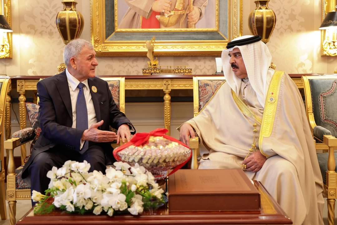 أكد الرئيس عبد اللطيف جمال رشيد وجلالة الملك حمد بن عيسى آل خليفة على أهمية إرساء الأمن والاستقرار في المنطقة والعمل على إنهاء معاناة الشعب الفلسطيني الشقيق ومنحه حقوقه المشروعة وحث المجتمع الدولي لتحمّل مسؤولياته القانونية والأخلاقية لوقف الحرب في قطاع غزة.ب