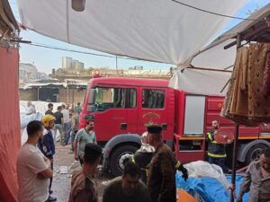 وقالت تلك المصادر إن “حريقا اندلع في وقت مبكر من صباح اليوم الأحد، في سوق القيصرية الأثري وسط مدينة كركوك وأدلى إلى احتراق نحو 100 إلى 150 محلا بالكامل”، مبينة أن “فرق الدفاع المدني هرعت إلى مكان الحادث وتمكنت من السيطرة على الحريق”، مؤكدا “عدم تسجيل إصابات بشرية جراء الحادث الذي ترجح المصادر أن يكون سببه تماس كهربائي”.