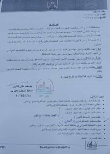 وأظهرت وثيقة لقرار المحافظ كناوي ، / حصل المسرى على نسخة منها / ، اليوم الاربعاء ، أشارت الى إعفاء مدير التخطيط العمراني محمد صاحب كريم ، وتكليف مدير البلديات أحمد المحنه محله وتكليف مدير جديد لدائرة التخطيط العمراني وتكليف غالب حيدر مدير جديد لمديرية البلديات بالمحافظة “.