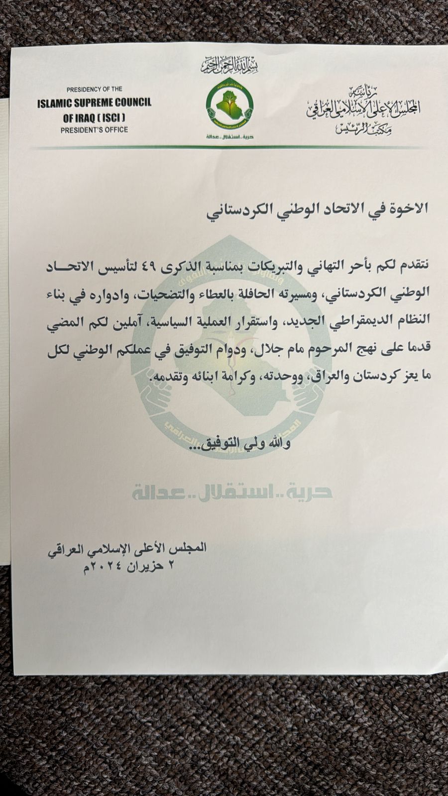 “مسيرة حافلة بالعطاء والتضحيات”.. المجلس الأعلى يهنئ الاتحاد الوطني