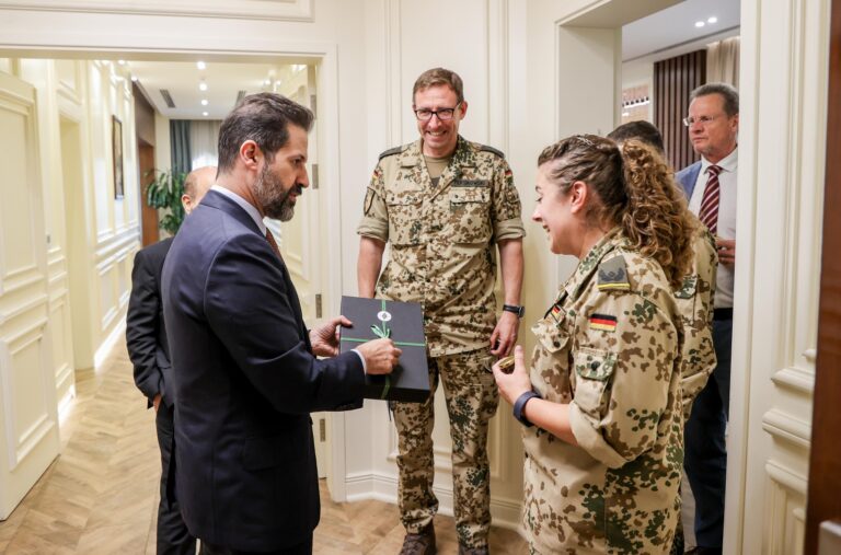 وقال مكتبه الإعلامي إن “طالباني استقبل في أربيل، اليوم، وفدا عسكريا ألمانيا برئاسة الكولونيل لارس بيرسيكوفسكي قائد القوات الألمانية في إقليم كردستان”، مبينا أن “اللقاء شهد بحث ملف الإصلاحات في وزارة البيشمركه وملفات أخرى”.