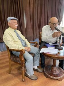 في بداية الجلسة التي ادارها القاص فيصل هموندي قدم تعريفا بالمنجز الجديد للمؤلف ، ومن ثم سلط الشاعر نبذة عن ديوانه الشعري.