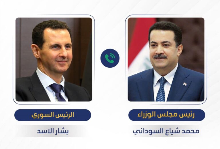 وقال المكتب الاعلامي لرئيس الوزراء في بيان تابعه المسرى، ان “رئيس مجلس الوزراء محمد شياع السوداني، بحث في اتصال هاتفي مع رئيس الجمهورية العربية السورية بشار الأسد، العلاقات الثنائية والقضايا ذات الاهتمام المشترك”.