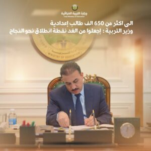 وبعث وزير التربية الدكتور إبراهيم نامس الجبوري رسائل الإطمئنان الى اكثر من (٦٥٠) ألف طالب وطالبة يستعدون لاداء الإمتحانات الوزارية للدراسة الإعدادية السبت الموافق الثامن من حزيران، موصيا إياهم بالابتعاد عن متابعة الصفحات الوهمية والابتزاز الكاذب وشائعات تسريب الاسئلة، فهي مؤمنة بالكامل ومجهودكم الدراسي محفوظ بأيد أمينة لا يمكن المساس به مطلقا،حاثا إياهم على الجد والاجتهاد وجعل هذا الماراثون الحيوي نقطة التحول والانطلاق نحو غد مشرق.