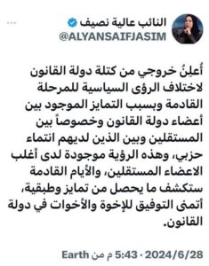 النائب عالية نصيف تنشق عن ائتلاف دولة القانون