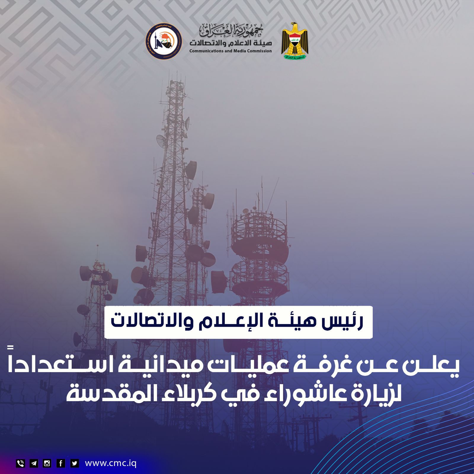 أعلن رئيس هيئة الإعلام والاتصالات الدكتور علي المؤيد عن تشكيل غرفة عمليات ميدانية في مدينة كربلاء المقدسة، بهدف ضمان توفير خدمات اتصالات عالية الجودة وموثوقة خلال زيارة عاشوراء.