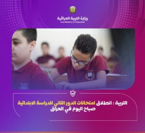 أعلنت وزارة التربية صباح ( اليوم السبت 8/3/ 2024 ) إنطلاق الامتحانات الوزارية للدراسة الابتدائية/ الدور الثاني في بغداد والمحافظات للعام الدراسي ٢٠٢٣_٢٠٢٤.