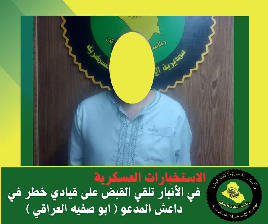 أعلنت خلية الإعلام الأمني ، اليوم الأحد، إلقاء القبض على إرهابي خطر عمل في ما يسمى نائب والي ولاية الفرات سابقاً المدعو ( أبو صفية العراقي ) في محافظة الأنبار.