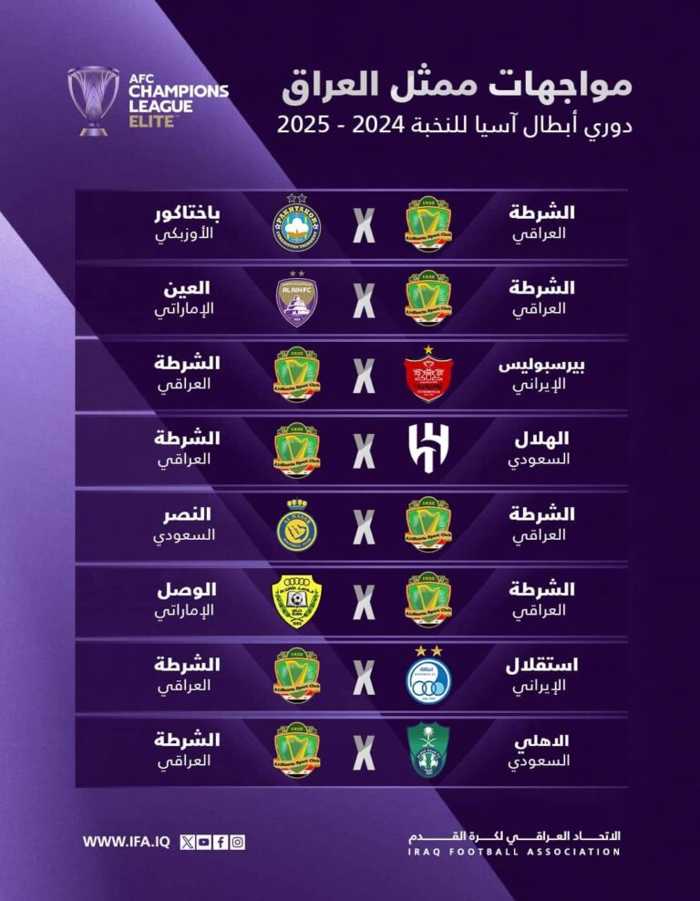 مواجهات نادي الشرطة في دوري ابطال آسيا للنخبة