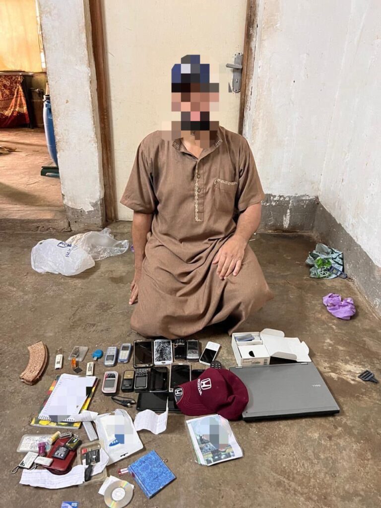 وأضافت انه تم “ضبط عدد من الهواتف (موبايلات) وحاسبة (لابتوب) بحوزة الارهابي، وقد تم تسليمه الى الجهات المختصة لإكمال الاجراءات القانونية بحقه”.
