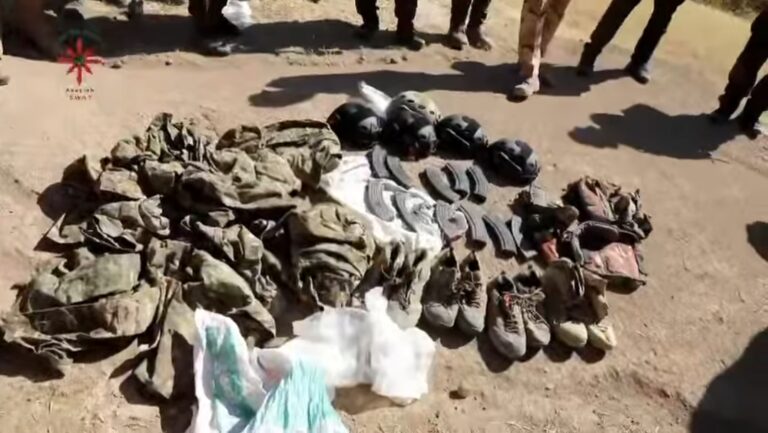 وأضاف أن “المضافات كانت تضم العديد من قطع الأسلحة والأعتدة ومادة التي أن تي وأجهزة الاتصال اللاسلكية وملابس عسكرية وأغذية”.