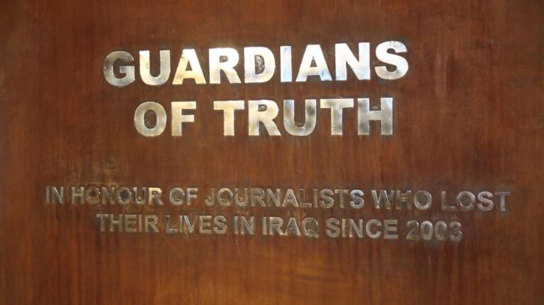 وفي السياق ذاته قال رئيس مرصد الحريات الصحفية زياد العجيلي للمسرى إن ” محافظة السليمانية معروفة من القدم بمدينة الحريات، كونها تحترم حريات التعبير والحرية الشخصية للأفراد، وما افتتاح نصب “حراس الحقيقة ” كتخليد للصحفيين الذين قضوا خلال العمل الصحفي في العراق بعد عام 2003 ولغاية اليوم من عراقيين واجانب من اجل نقل الحقيقة، هو دليل على دعم الصحفيين وتقدير مجهوداتهم”، مشيرا إلى ان ” دور الصحافة اليوم بدأ يتقلص بسبب ازدياد مواقع التواصل الاجتماعي ودعم منصات إلكترونية من قبل شخصيات متنفذة وأشخاص يبثون ما يريدون هم “.